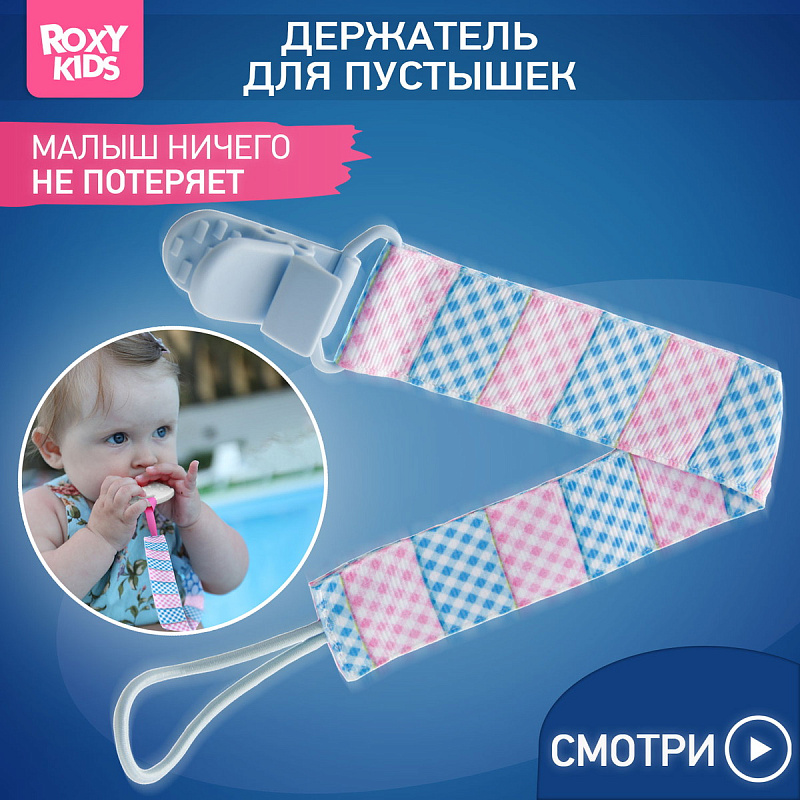 Держатель для пустышки от ROXY-KIDS избавит ребенка от риска потерять или испачкать пустышку, соску, ниблер или грызунок. Один конец держателя прикрепляется к тому предмету, который вы хотите сохранить, а второй при помощи специальной клипсы пристегивается к одежде ребенка. Держатели выполнены из двух слоев полиэстера, прочно сшитых вместе, поэтому они не износятся и не порвутся. Яркие цвета ткани привлекут внимание ребенка и будут отлично смотреться на фоне детской одежды. С держателями пустышка останется чистой, будет всегда поблизости к малышу и у вас на виду. В ассортименте ROXY-KIDS держатели представлены в нескольких цветах и дизайнах.