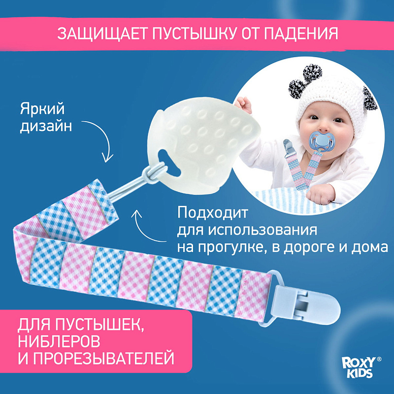Держатель Roxy-Kids для пустышек RPC-004 Голубой-Розовый