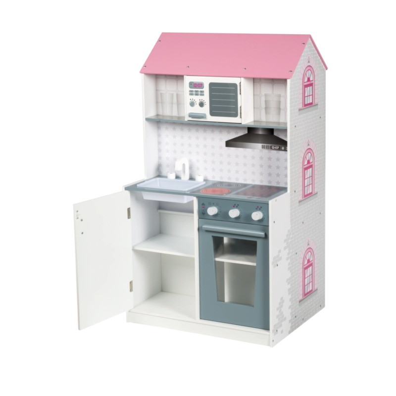 Детская игровая кухня и домик для кукол Roba 2 в 1 белый/розовый
