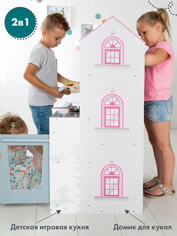 - Игровой домик для кукол и кухня 2в1 - идеальная игрушка для девочек. Подходит для ролевых игр, способствует общению и развивает воображение.
