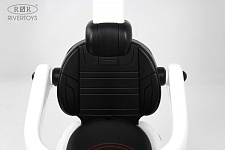 Каталка оснащена светозвуковыми эффектами. Включаются при помощи кнопки. Подсветка на колёсах. Есть боковые фиксаторы безопасности. Под сиденьем имеется место для хранения. Родительскую ручку можно снять.