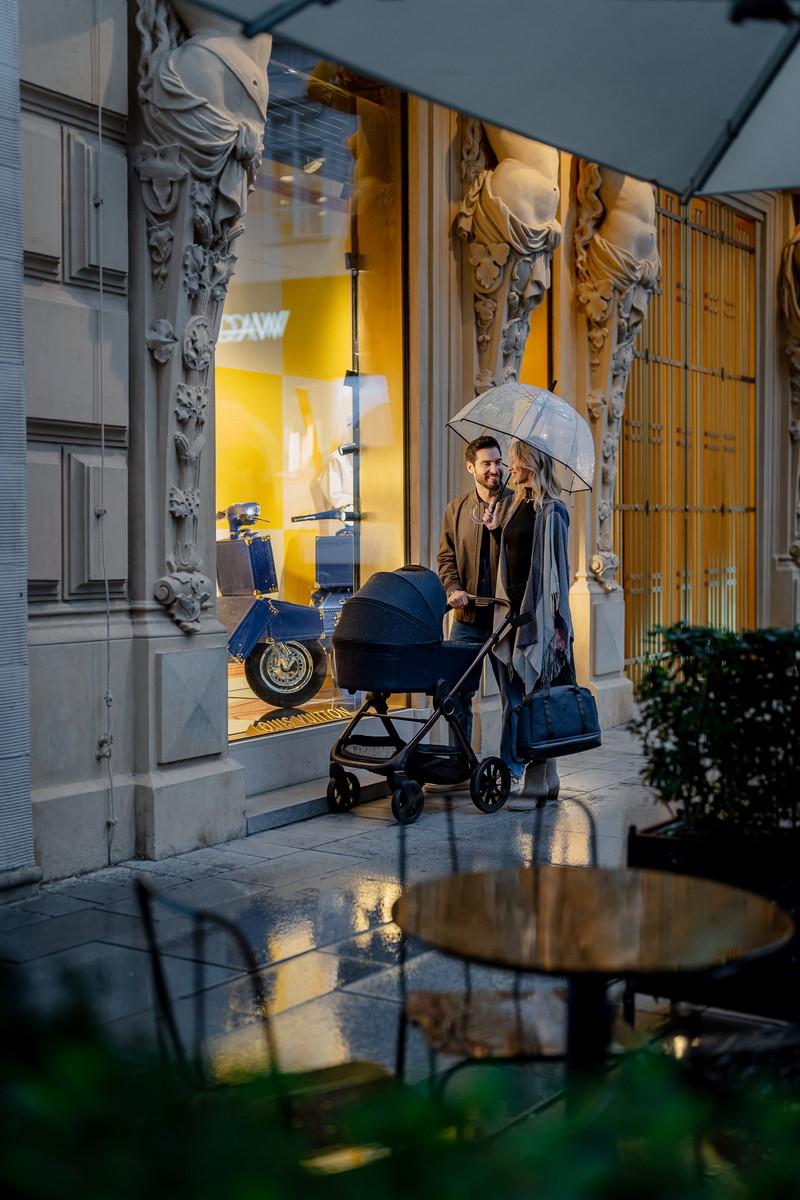 - Автоматическое складывание коляски. Коляска оснащена современной системой Move & Fold, благодаря которой рама складывается быстро и автоматически. При необходимости коляску можно сложить как отдельно, так и вместе с прогулочным блоком, что особенно удобно для поездок и хранения.