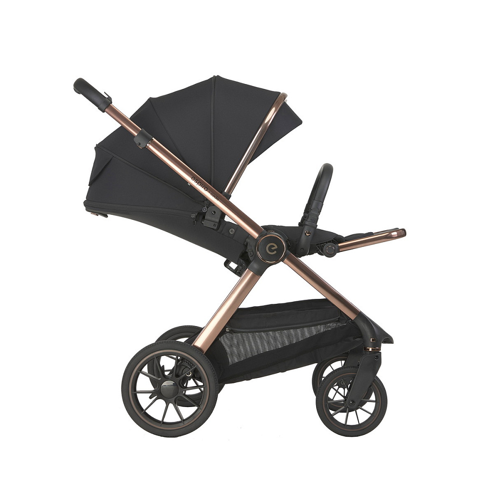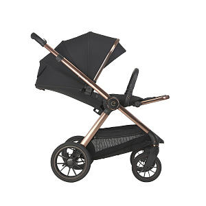 - Премиальный дизайн с медными акцентами. Элегантная отделка рамы и аксессуаров в цвете благородной приглушенной меди подчеркивает современный стиль коляски и делает её по-настоящему эффектной.