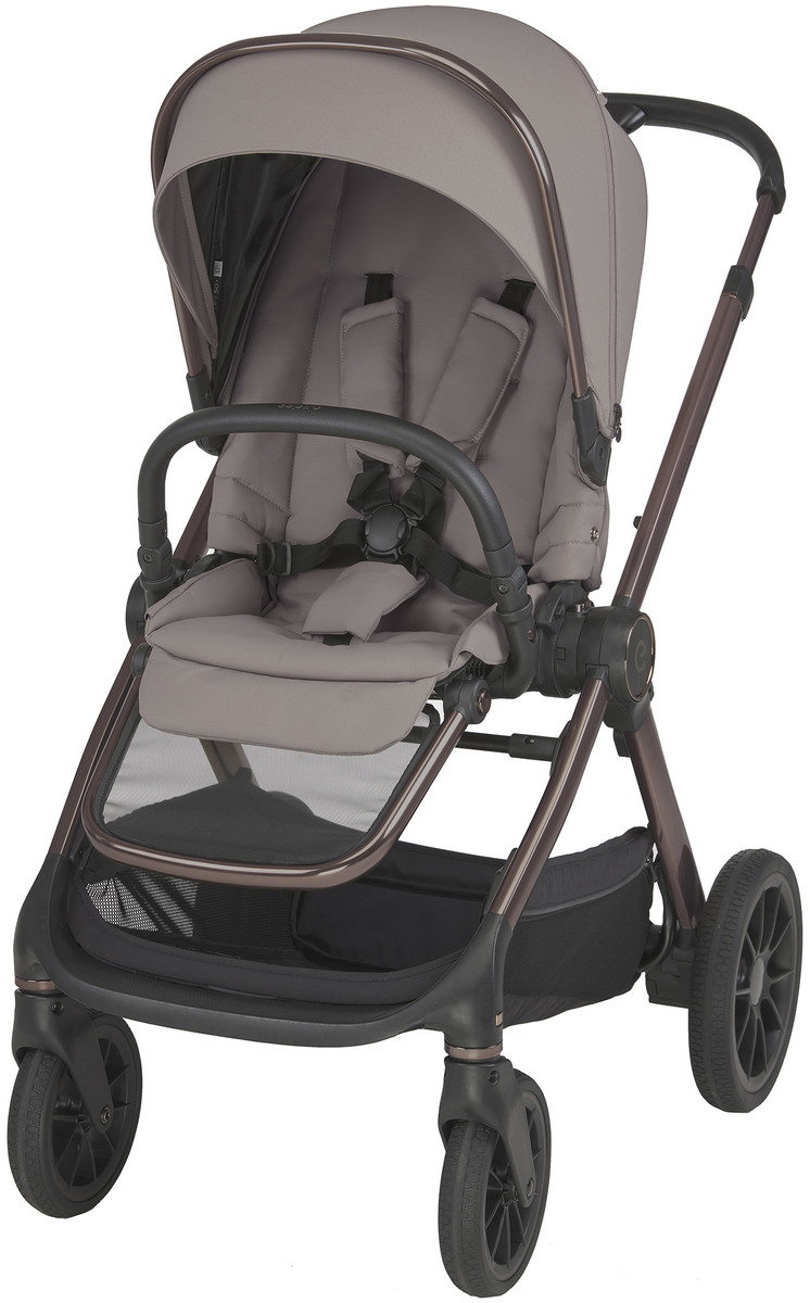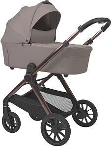• Премиальный дизайн с медными акцентами. Элегантная отделка рамы и аксессуаров в цвете благородной приглушенной меди подчеркивает современный стиль коляски и делает её по-настоящему эффектной.