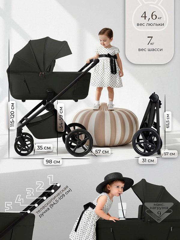 Регулируемая телескопическая ручка позволяет настроить высоту под любые ростовые особенности родителей, обеспечивая интуитивное управление без лишних усилий. Колеса с водоотводящими протекторами обеспечивают надежное сцепление и уверенную проходимость по улицам, защищая от проскальзывания и предоставляя дополнительную безопасность.