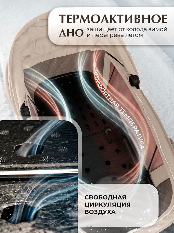 Термоактивное дно люльки поддерживает оптимальную температуру и защищает от переохлаждения зимой и перегрева летом.