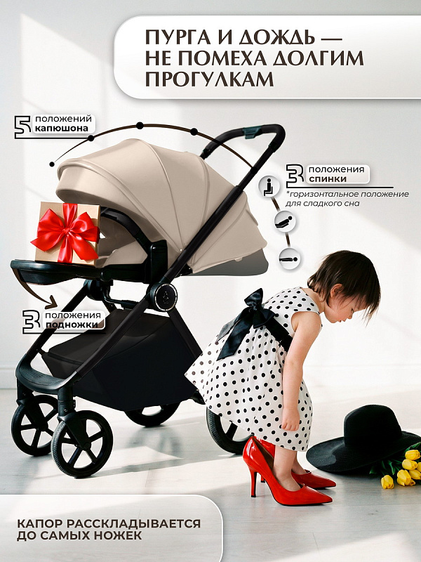 Регулируемая телескопическая ручка позволяет настроить высоту под любые ростовые особенности родителей, обеспечивая интуитивное управление без лишних усилий. Колеса с водоотводящими протекторами обеспечивают надежное сцепление и уверенную проходимость по улицам, защищая от проскальзывания и предоставляя дополнительную безопасность.