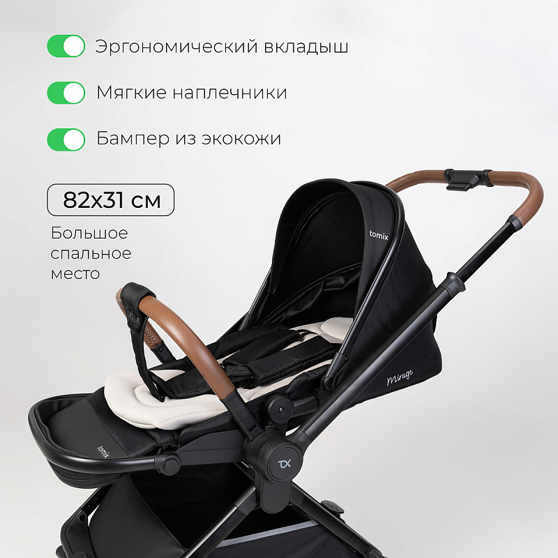 Детская коляска 2 в 1 TOMIX Mirage — это универсальное решение для родителей, которые ищут комфорт и безопасность для своего малыша. Коляска оснащена перекидной телескопической ручкой из экокожи с перфорацией, что обеспечивает удобство управления и контроль над направлением взгляда ребёнка.