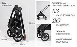 Диаметр колёс составляет 20 см, что гарантирует устойчивость и проходимость коляски. Ножной тормоз с обеих сторон гарантирует безопасность и контроль над движением коляски.