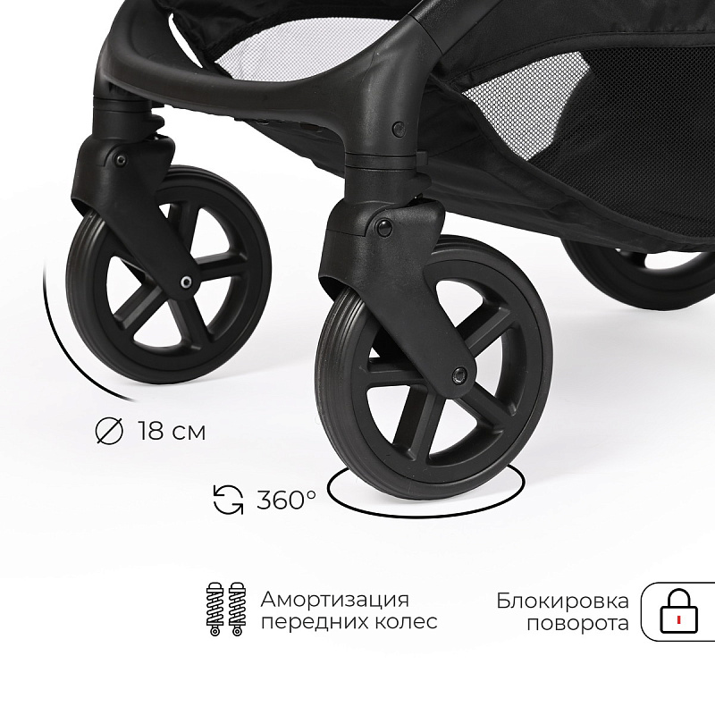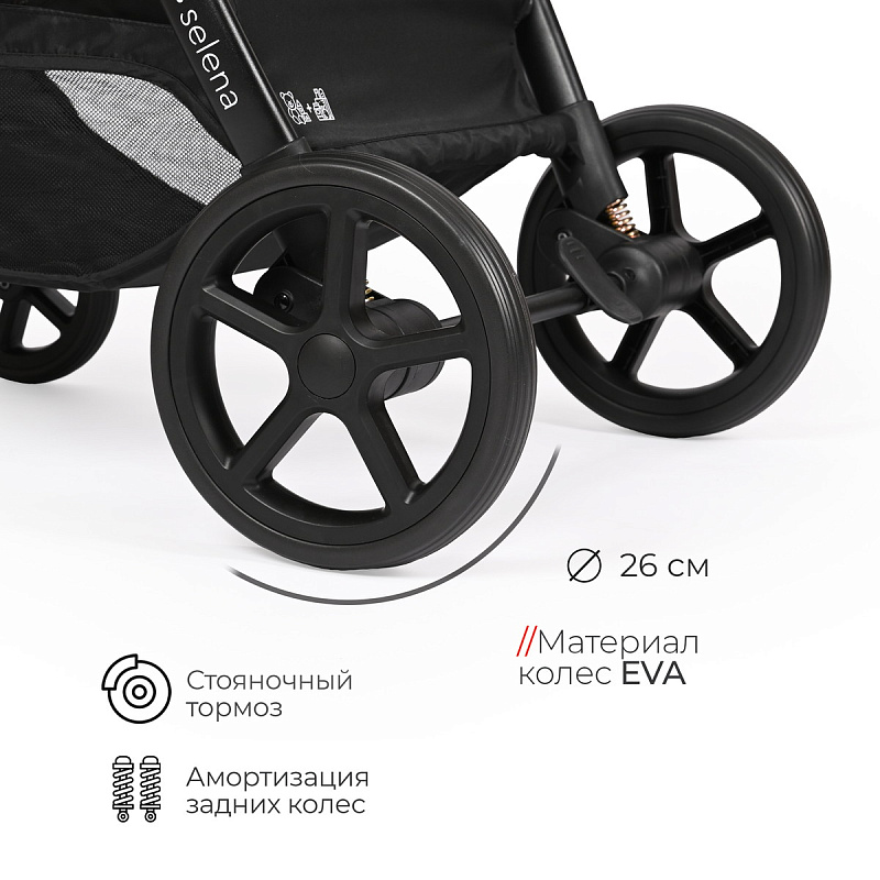 - поворотные передние колеса с фиксацией диаметром 18 см, задние колеса – 26 см, материал колес - EVA;