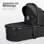 Пятиточечные ремни безопасности обеспечивают надёжное крепление малыша внутри коляски, а дождевик защищает от непогоды.