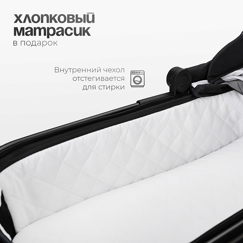 Люлька для новорождённого — это идеальное дополнение к коляске. Она оснащена удобным матрасиком, мягкой съёмной обивкой из дышащей хлопчатобумажной ткани, которую можно стирать. Защитный экран со смотровым окном обеспечивает защиту от ветра и осадков, а три вентиляционных окошка в стенках люльки создают комфорт в жаркие летние дни. Ручка для переноски из экокожи делает процесс переноски люльки максимально удобным.