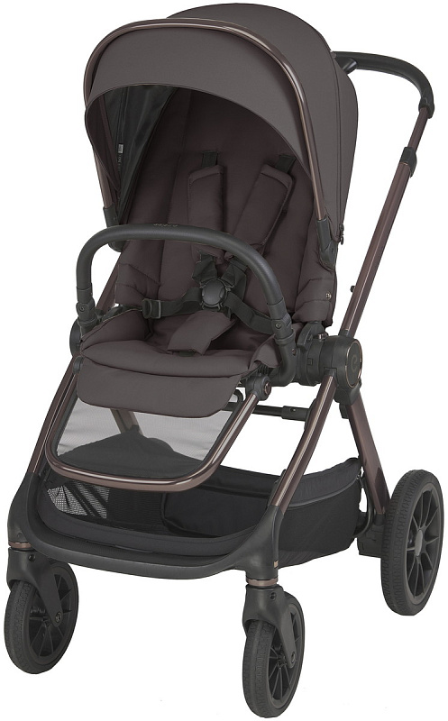 - Премиальный дизайн с медными акцентами. Элегантная отделка рамы и аксессуаров в цвете благородной приглушенной меди подчеркивает современный стиль коляски и делает её по-настоящему эффектной.