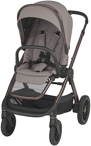 - Премиальный дизайн с медными акцентами. Элегантная отделка рамы и аксессуаров в цвете благородной приглушенной меди подчеркивает современный стиль коляски и делает её по-настоящему эффектной.