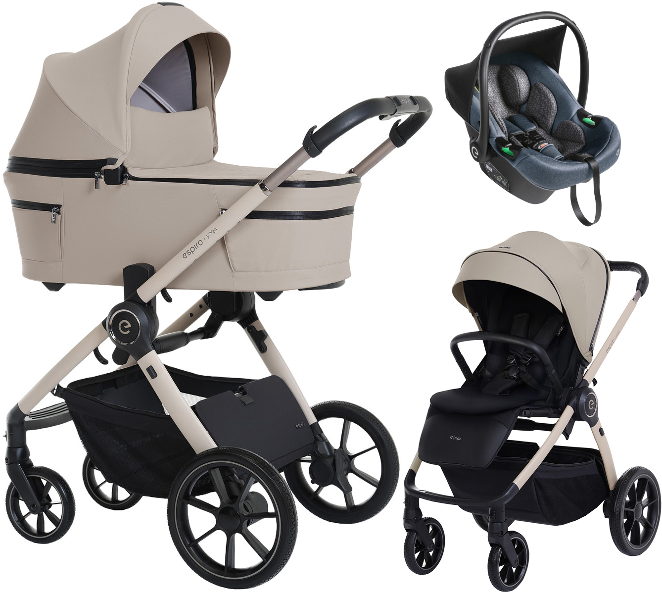 Детская коляска 3 в 1 Espiro Yoga 2026 и автокресло Pi Gray blue 219 assana lotos voice of nature