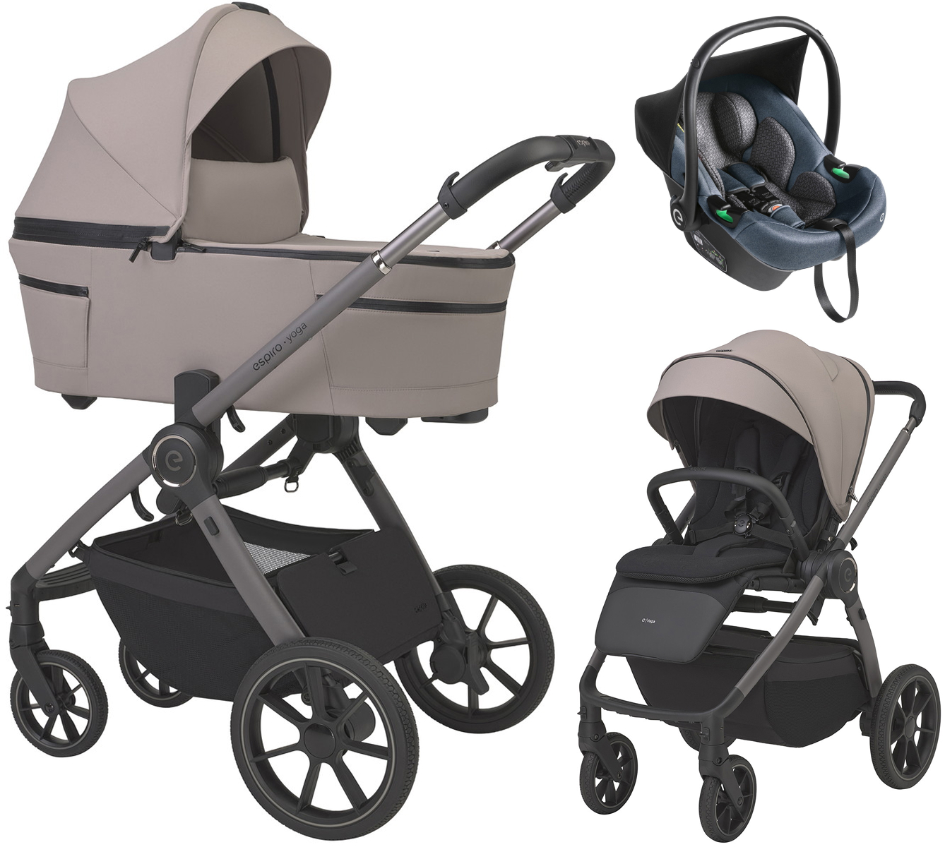 Детская коляска 3 в 1 Espiro Yoga 2026 и автокресло Pi Gray blue 229 power of nature
