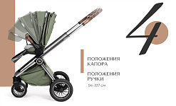 - Телескопическая ручка (94-107 см от пола) позволяет родителям легко управлять коляской и подстраивать её под свой рост;