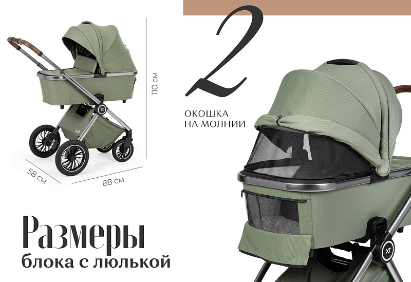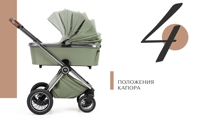 - Премиальная ткань используется для обивки коляски, обеспечивая мягкость и долговечность;