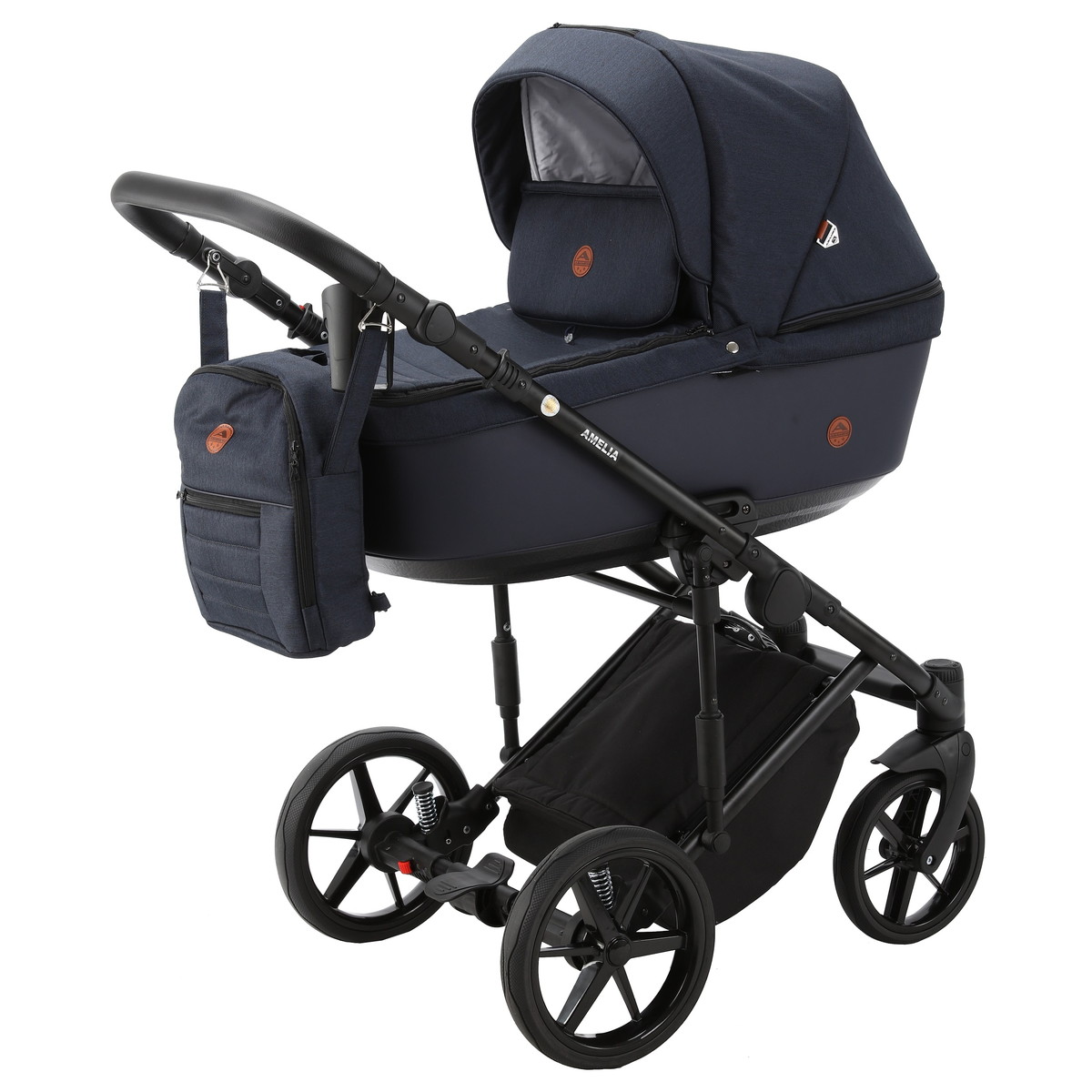 Детская коляска Adamex Amelia 3 в 1 AM242-TIP (Т.СИН.ТК.+Т.СИН.КОЖА)