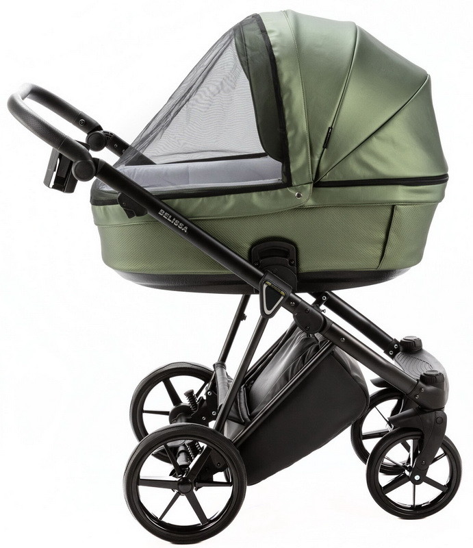 Детская коляска Adamex Belissa Deluxe 3 в 1 B-SM14 (ЗЕЛЁН.ПЕРЛ.КОЖА)