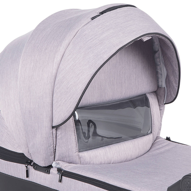 Люлька оснащена системой вентиляции: открывающиеся/закрывающиеся отверстия на дне люльки обеспечивают естественную циркуляцию воздуха и способствуют созданию комфортного микроклимата внутри люльки. Капюшон пристегивается к основе молнией и оборудован сетчатой вставкой, обеспечивающей вентиляцию. Помимо этого сзади капюшона имеется дополнительная вставка, расстегнув которую капюшон опускается еще ниже, закрывая максимально малыша от непогоды. Смотровое окошко расположенное под отворотом на чехле люльки, позволяет смотреть на ребенка даже в сильный снегопад. Подголовник внутри люльки можно поднять внешним вентилем на дне люльки.