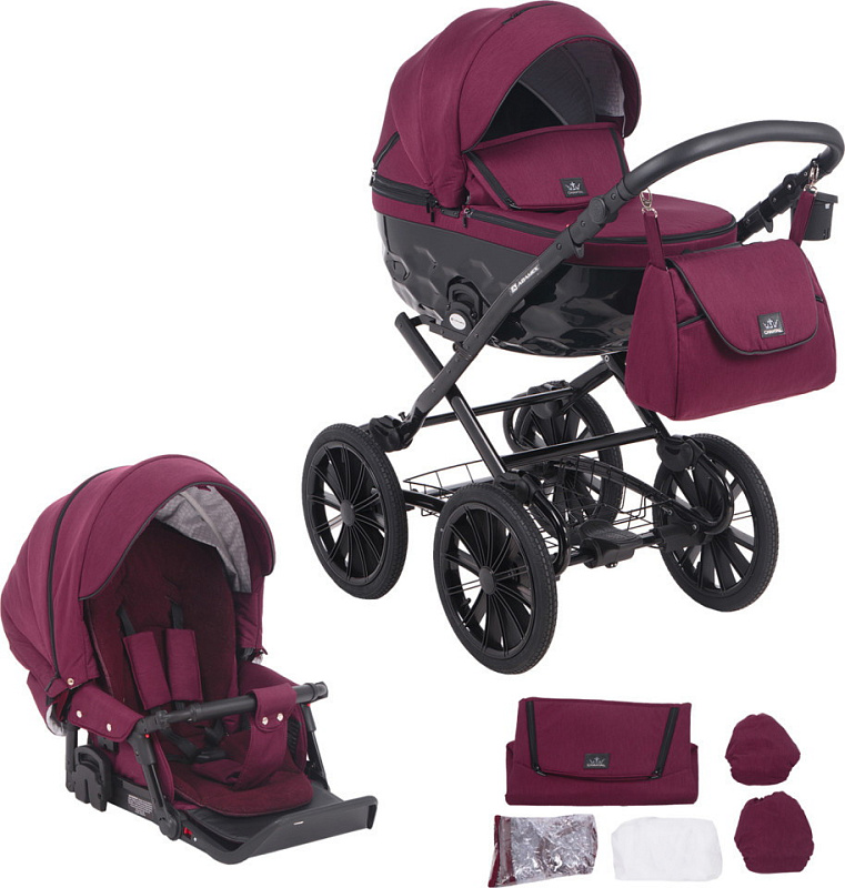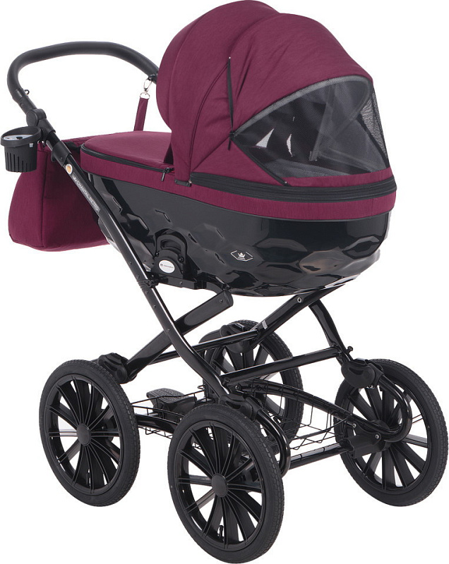 Коляска Adamex 2 в 1 Chantal Retro с эксклюзивным алмазным узором низа люльки, отличается классической рамой с большими колеса, не требующие обслуживания и накачивания. Верх люльки выполнен из плотной ткани в благородных оттенках, в сочетании с глянцевым покрытие нижней части, смотрится ярко и элегантно.