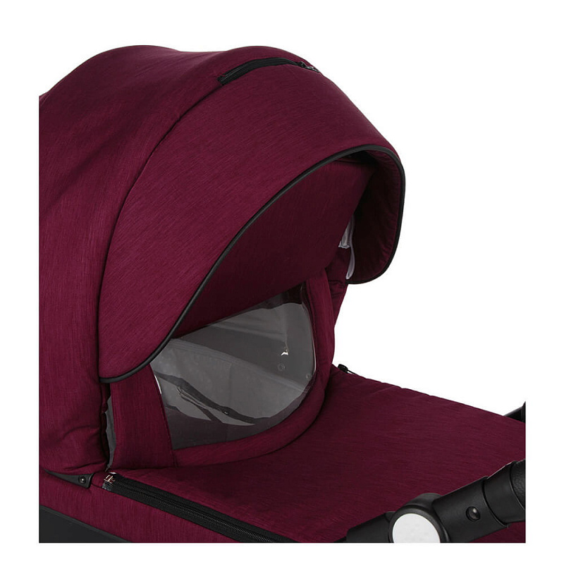 Люлька оснащена системой вентиляции: открывающиеся/закрывающиеся отверстия на дне люльки обеспечивают естественную циркуляцию воздуха и способствуют созданию комфортного микроклимата внутри люльки. Капюшон пристегивается к основе молнией и оборудован сетчатой вставкой, обеспечивающей вентиляцию. Помимо этого сзади капюшона имеется дополнительная вставка, расстегнув которую капюшон опускается еще ниже, закрывая максимально малыша от непогоды. Смотровое окошко расположенное под отворотом на чехле люльки, позволяет смотреть на ребенка даже в сильный снегопад. Подголовник внутри люльки можно поднять внешним вентилем на дне люльки.