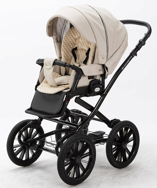 Эксклюзивный дизайн люльки в паре с элегантным классическим шасси придают коляске неповторимый шарм. А большие надувные колеса – высокую проходимость и плавное укачивание.