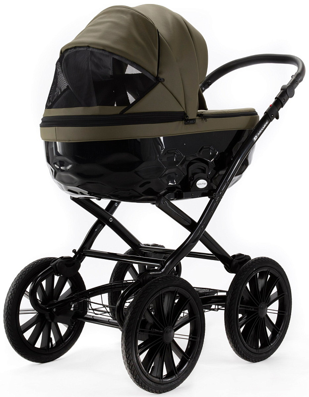 Эксклюзивный дизайн люльки в паре с элегантным классическим шасси придают коляске неповторимый шарм. А большие надувные колеса – высокую проходимость и плавное укачивание.