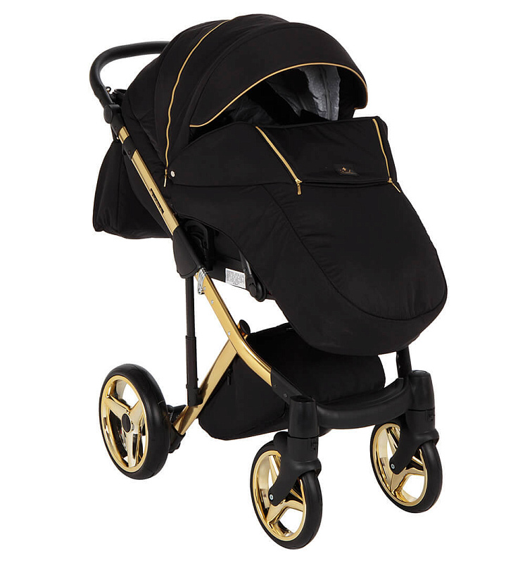 Детская коляска Adamex Chantal Special Edition 2 в 1 C1-A (ЧЕРН+ЧЕРН.РИФЛЕН.ДНО,ЗОЛОТ.МОЛН+ЗОЛОТО РАМА)