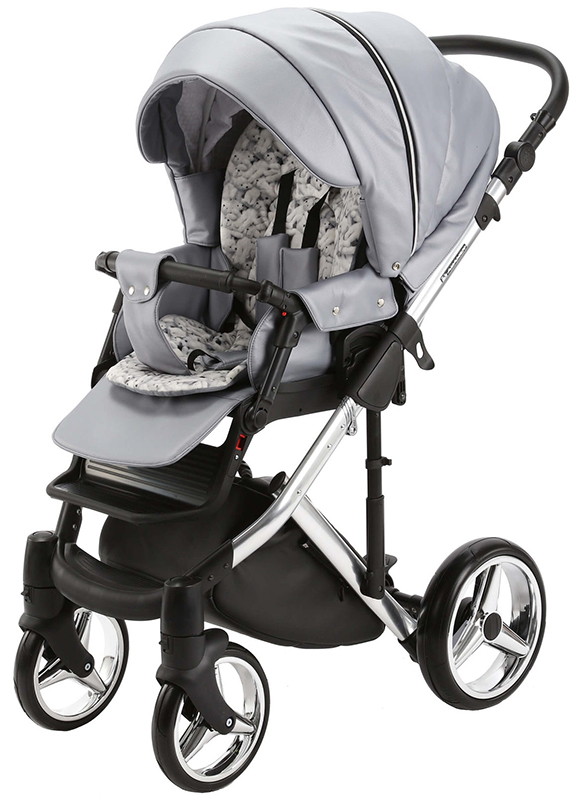 Детская коляска Adamex Chantal Special Edition Deluxe 2 в 1 C102 (СЕР.ПЕРЛ.КОЖА ХРОМ.РАМА)
