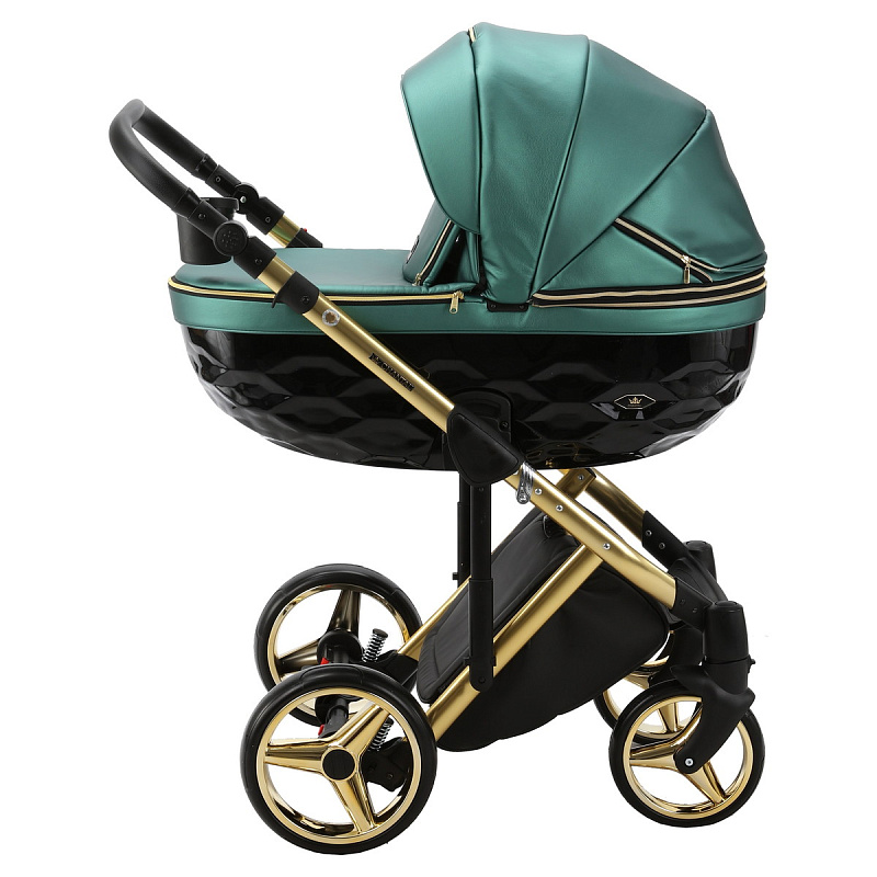 Детская коляска Adamex Chantal Special Edition Deluxe 2 в 1 C105B (ИЗУМРДНАЯ 100% КОЖА-ЗОЛОТЫЕ МОЛНИИ)