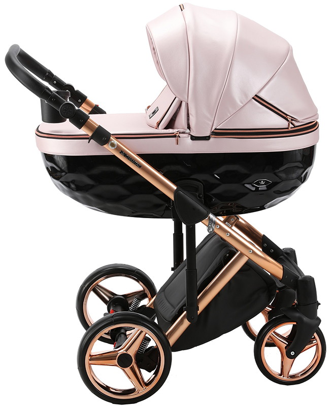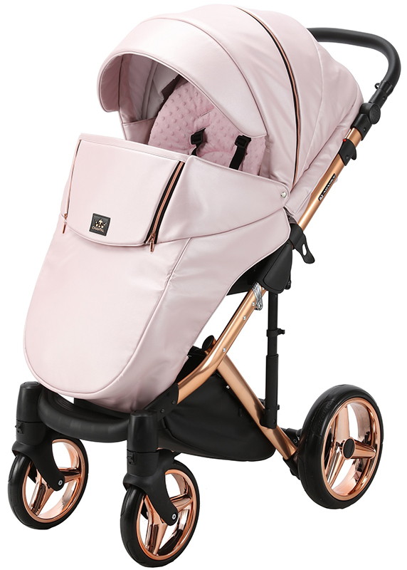 Детская коляска Adamex Chantal Special Edition Deluxe 2 в 1 C118 (СВ.РОЗ.ПЕРЛ.КОЖА МЕДН.РАМА)