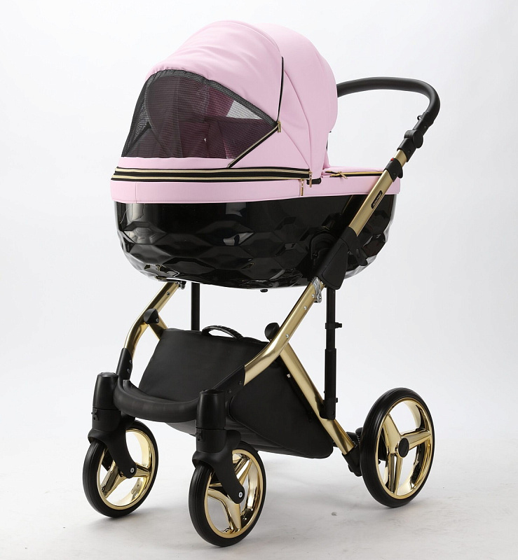 Детская коляска Adamex Chantal Special Edition Deluxe 2 в 1 C132-B (РОЗОВ.ЗЕФИР.КОЖА+ЧЕРН.РИФЛЕН.ДНО+ЗОЛОТ РАМА)