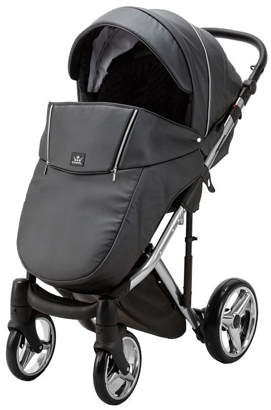 Детская коляска Adamex Chantal Special Edition Deluxe 2 в 1 С114 (ЧЕРН.ПЕРЛ.КОЖА+ХРОМ РАМА)