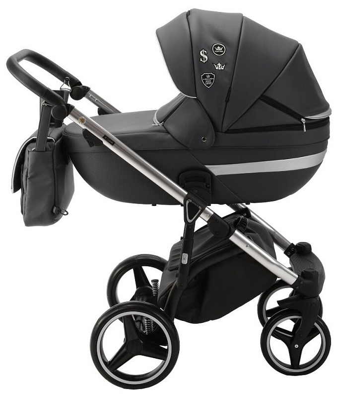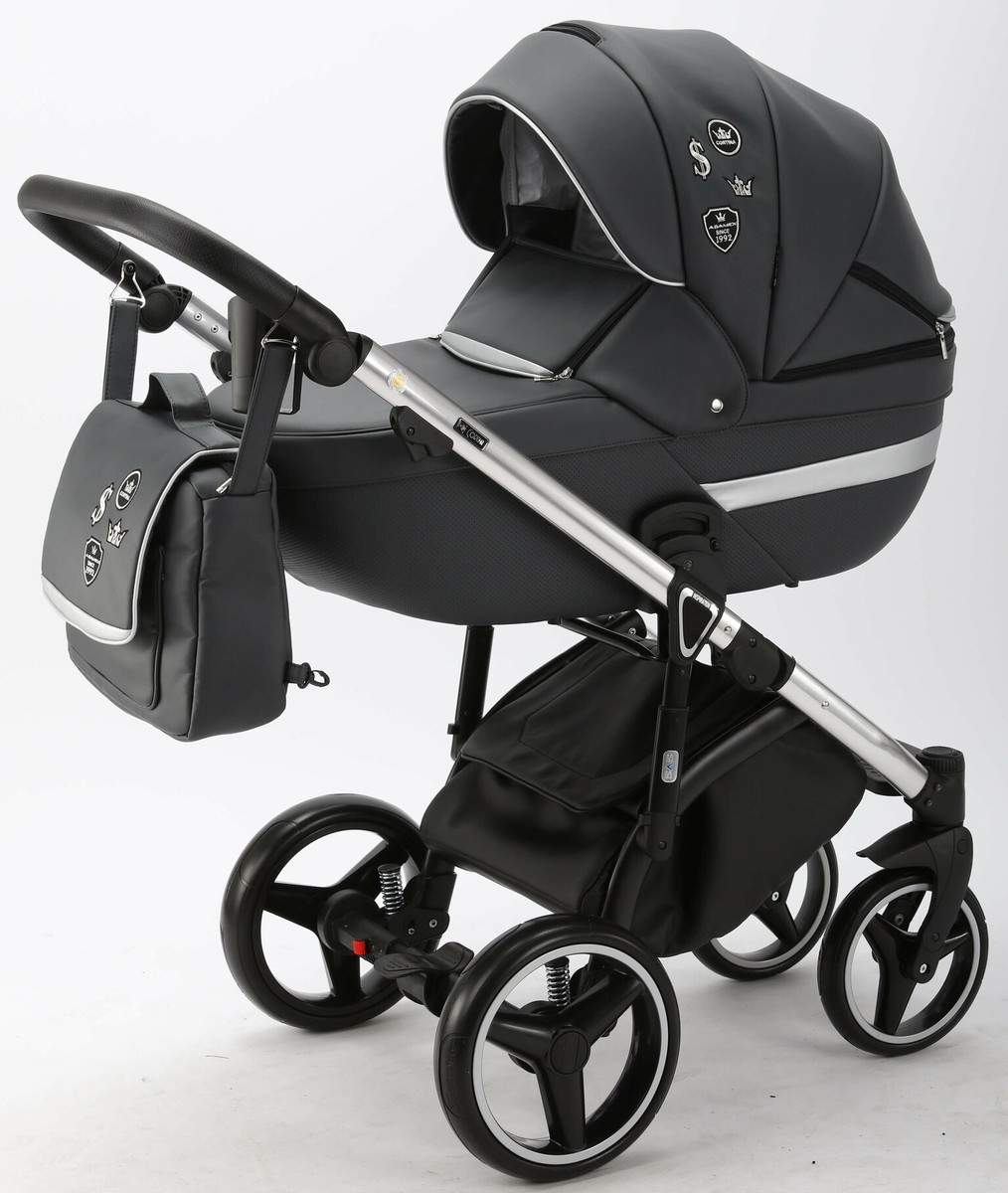 Детская коляска Adamex Cortina Deluxe 2 в 1 CT310 (МОРЕНГО КОЖА+СЕРЕБ.ОТДЕЛКА+ ХРОМ РАМА)