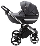Детская коляска Adamex Cortina Deluxe 3 в 1 CT334 (ЧЕРН.КОЖА+СЕРЕБ.ОТДЕЛКА+ ХРОМ РАМА)
