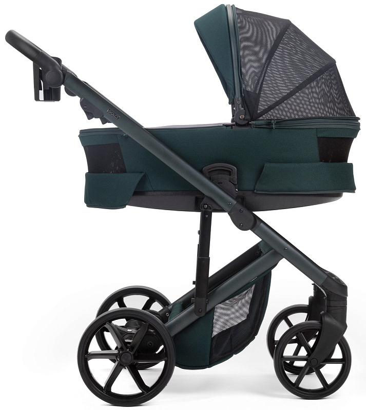 Просторная люлька отличается современным дизайном и оснащена механизмом быстрого складывания. Капюшон имеет съемную тканевую часть, под которой находится москитная сетка. Два вентиляционных окошка на молнии (спереди и сзади) обеспечивают отличную циркуляцию воздуха.