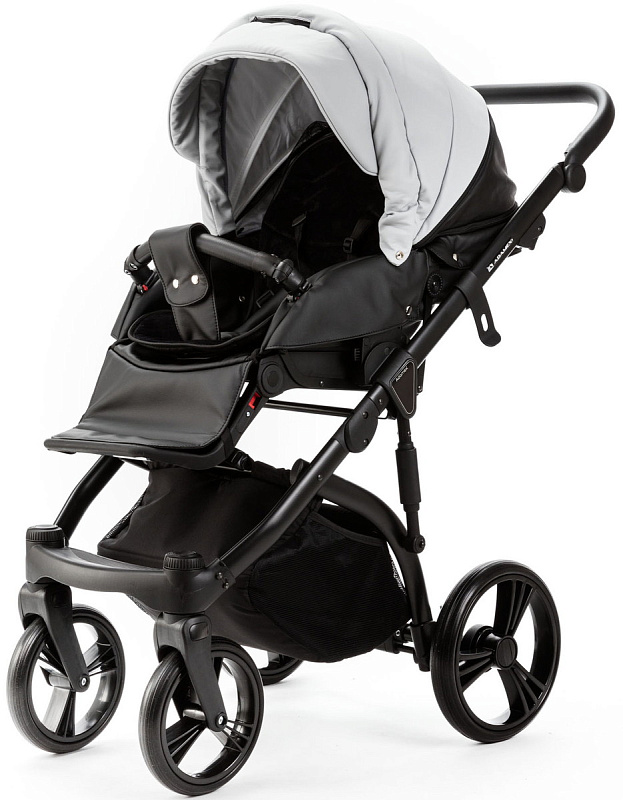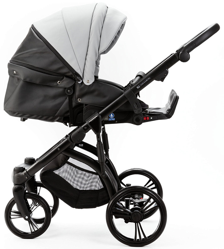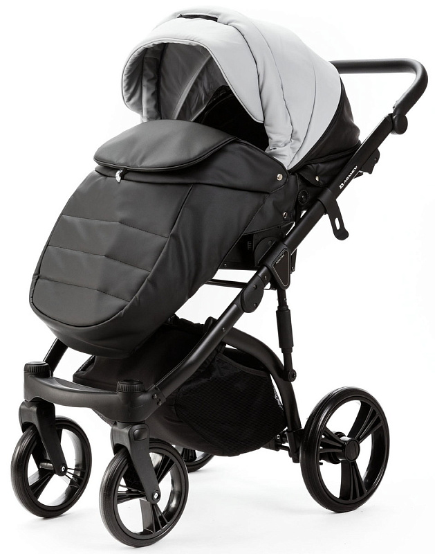 Детская коляска Adamex Lanti Deluxe 3 в 1 LN-SD107 (СВ.СЕР.КОЖА + ЧЕРН. КОЖА)