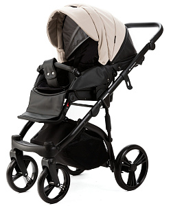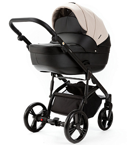 Детская коляска Adamex Lanti Deluxe 3 в 1 LN-SD110 (СВ.БЕЖ.КОЖА + ЧЕРН. КОЖА)