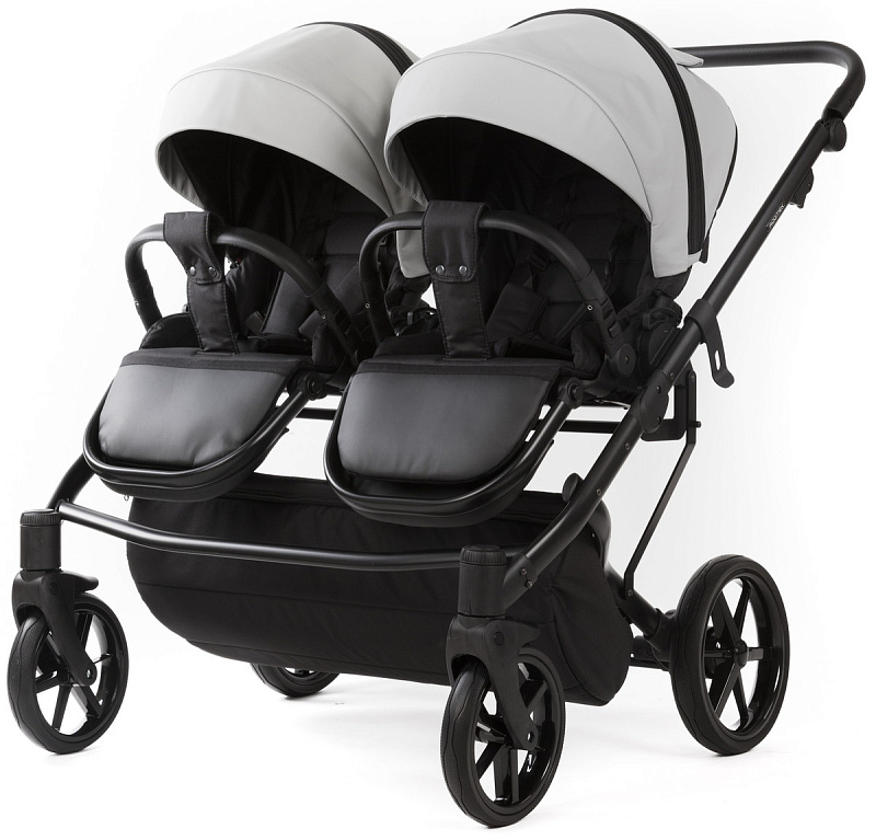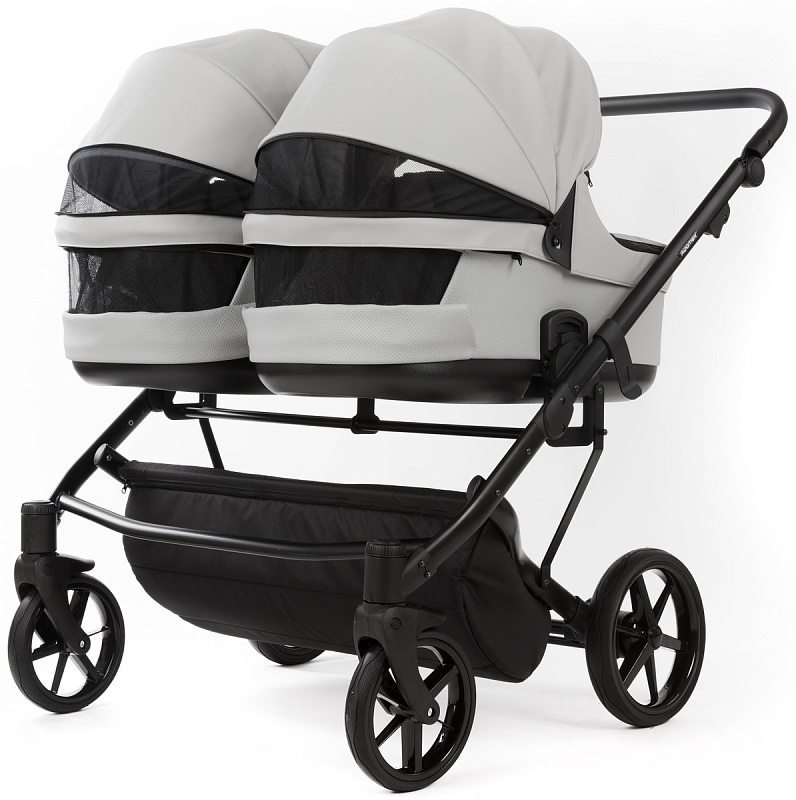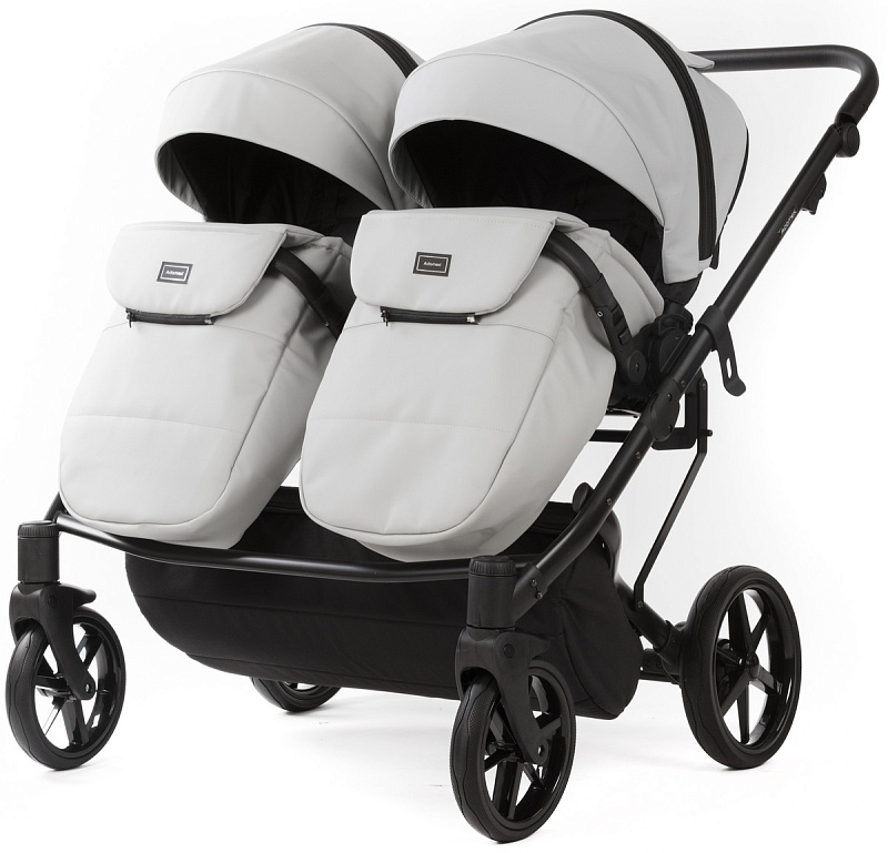 Детская коляска для двойни Adamex Leo Duo Deluxe 2 в 1 DUO-SA3 (СВ.СЕРАЯ КОЖА)