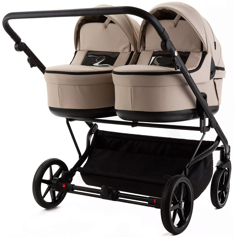 Детская коляска для двойни Adamex Leo Duo Deluxe 2 в 1 DUO-SA7 (СВ.БЕЖЕВАЯ КОЖА)