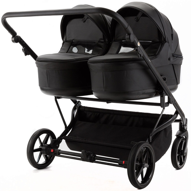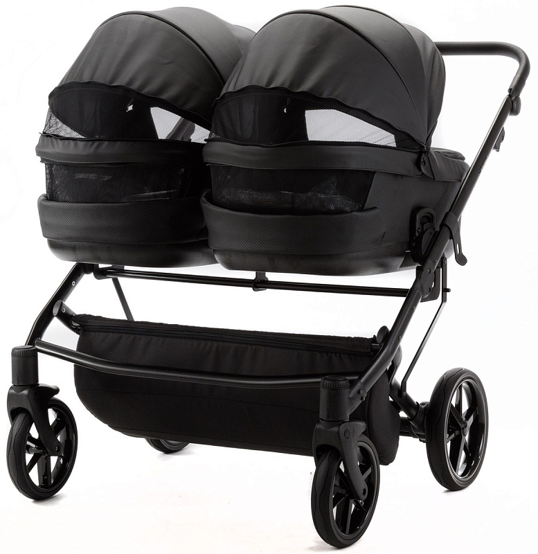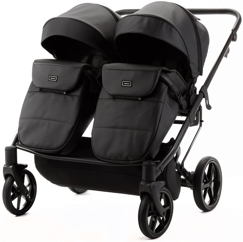 Детская коляска для двойни Adamex Leo Duo Deluxe 3 в 1 DUO-SA2 (ЧЕРНАЯ КОЖА)