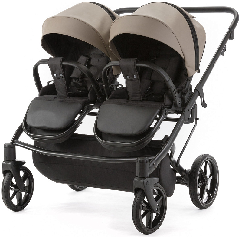 Детская коляска для двойни Adamex Leo Duo Deluxe 3 в 1 DUO-SA9 (Т.БЕЖЕВАЯ КОЖА)