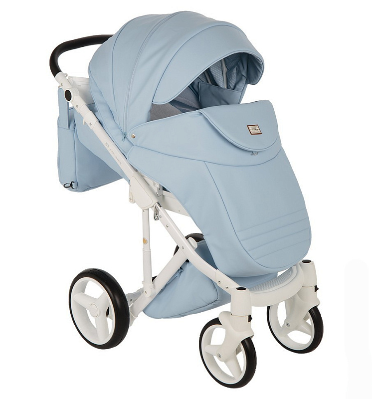 Детская коляска Adamex Luciano Deluxe 2 в 1 Q111 (ГОЛУБ. 100% КОЖА)