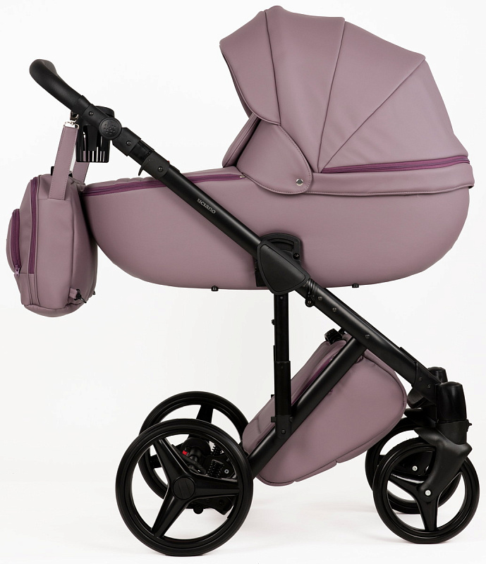 Детская коляска Adamex Luciano Deluxe 2 в 1 Q115-С (СИРЕНЬ ПУДРА 100% КОЖА+ЧЕРНАЯ РАМА)