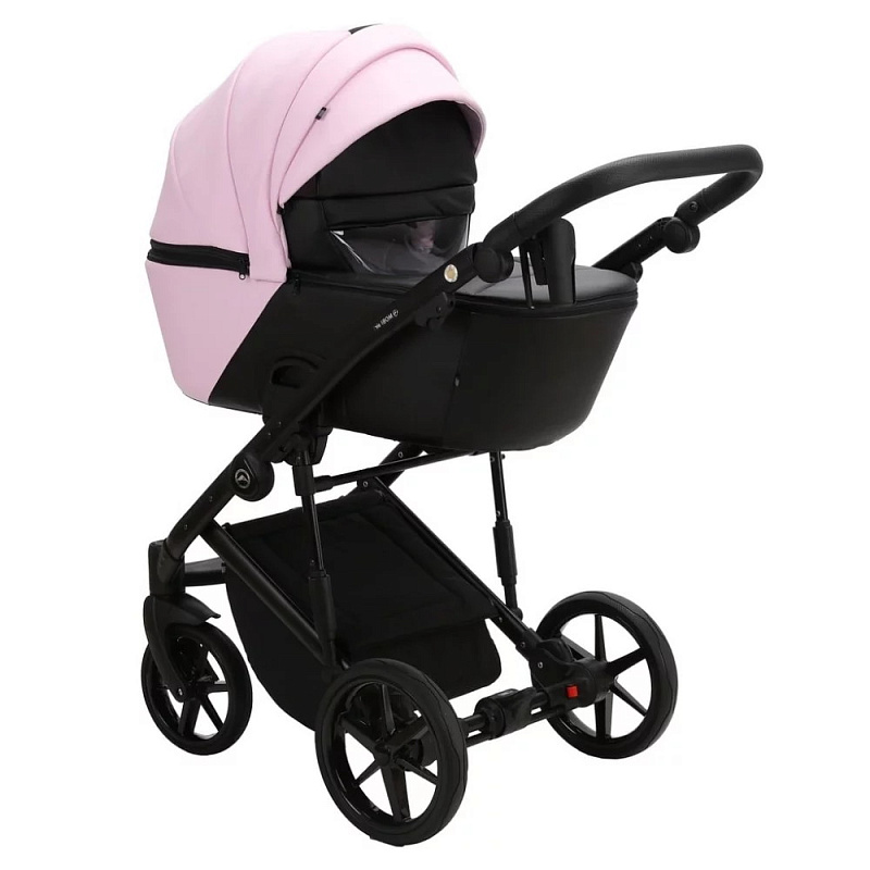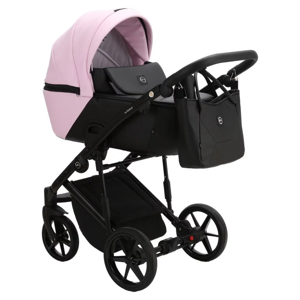 Детская коляска Adamex Mobi Deluxe 2 в 1 M-SD27 (РОЗОВЫЙ ЗЕФИР+ЧЕРНАЯ КОЖА)