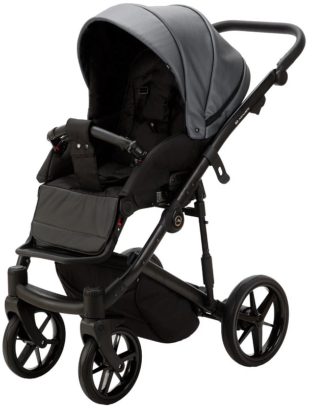 Детская коляска Adamex Mobi Deluxe 3 в 1 M-SD06 (ГРАФИТ+ЧЕРНАЯ КОЖА)