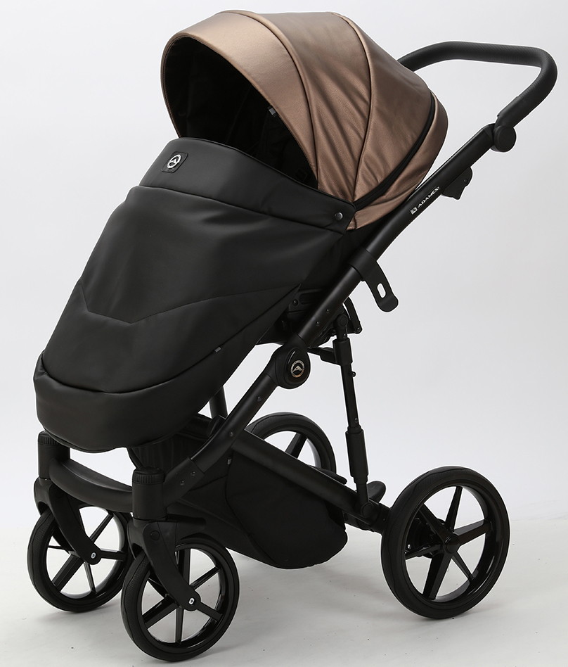 Детская коляска Adamex Mobi Deluxe 3 в 1 M-SD11 (ТЕМНО-БЕЖЕВЫЙ ПЕРЛ+ЧЕРНАЯ КОЖА)