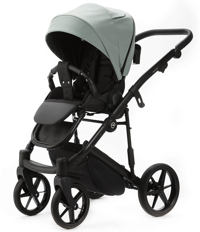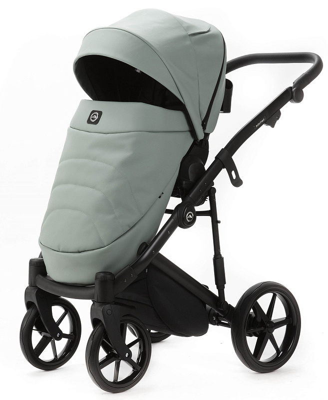Детская коляска Adamex Mobi Deluxe New 2 в 1 MN-SA20 СЕРО-ЗЕЛЕНАЯ КОЖА
